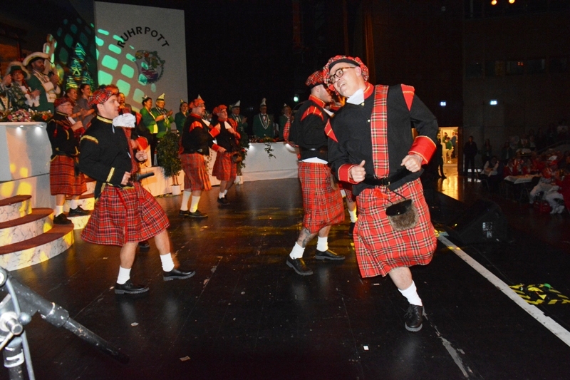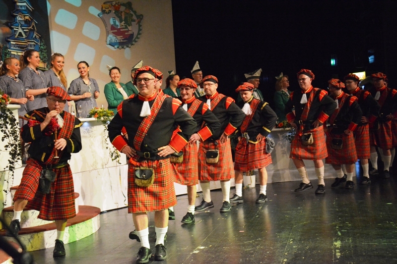 Hier war natürlich das vereinseigene Männerballett „Elferfanten“ gemeint, deren Mitglieder sich in diesem Jahr als Schotten zu einem fulminanten Tanz bewegten.