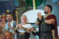 Unter der Führung ihres Cesars eroberte die Römertruppe die Bühne und feierte nach langer Zeit mit dem singenden, schunkelndem Publikum in ausgelassener Stimmung.