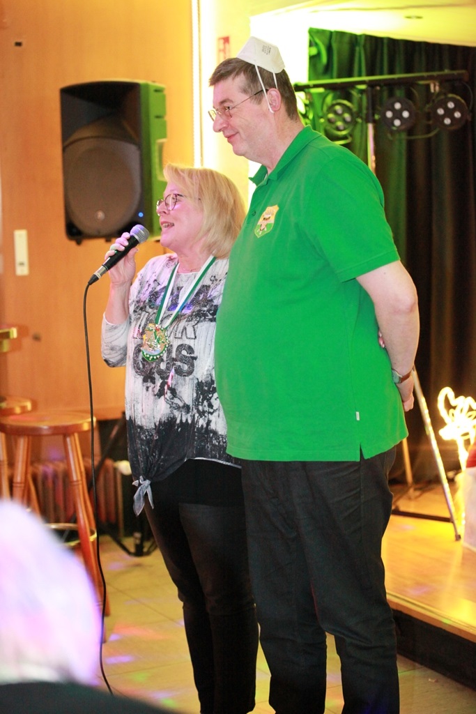 Der Vorstand wurde kreativ und überraschte mit den Ex-Tollitäten Dagmar Kock und Udo Winnekendonk, die sich flux in die Rolle als Prinzessin und Prinz zurückversetzten und den Wartenden in bester Thronmanier stellvertretend und mit Grüßen des amtierenden Paares die Orden überreichte.