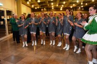 Die 10 süßen Mäuse in ihrer schicken Vereinstracht mit Röckchen und Weste eroberten die Herzen der anwesenden Närrinnen und Narren bei der großen Karnevalssitzung in der Walsumer Stadthalle im Sturm. Wie ihre Vorbilder aus der großen Tanzgarde wurde im Marschrhythmus das Beinchen geschwungen und schon profihaft Helau gerufen. Seit einem knappen halben Jahr proben die Rising Perls (aufsteigende Perlen) und werden sicher bald auch auf der Bühne tanzen und der nächsten Garde, den Walsumer Perlen Konkurrenz machen. Ihre Feuertaufe haben die Minis bei ihrem Auftritt vor den Senioren der Heimstatt Sankt Barbara schon ein paar Tage früher glänzend bestanden.