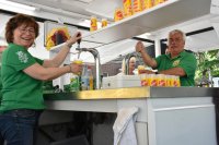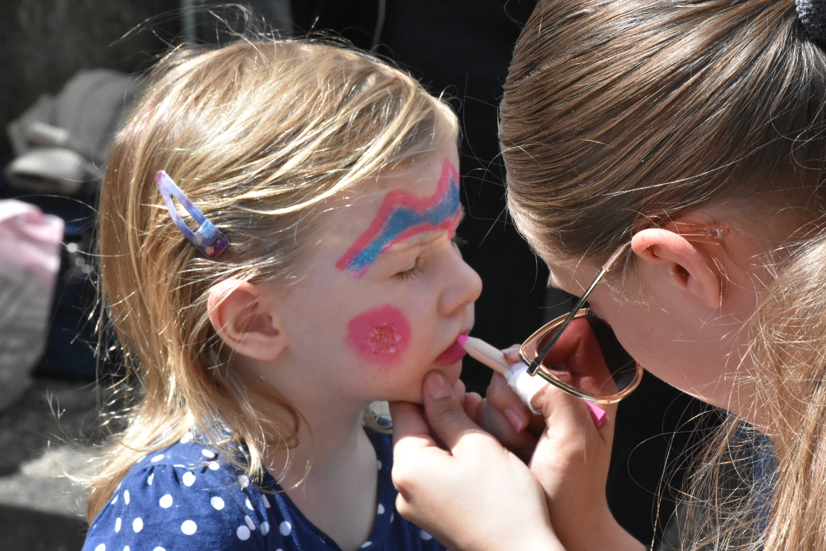 Unsere stolze Prinzengarde - die Gruen-Weiss Funken -, nutzte ihre schminktechnischen Erfahrungen aus unzähligen Showtanzauftritten und bot Kinderschminken und selbstgebackene Muffins und Kuchen an. Bunte Schmetterlinge, gefährliche Tiger oder gepunktete Dalmatiner liefen danach glücklich auf dem weitläufigen Gelände herum.