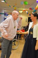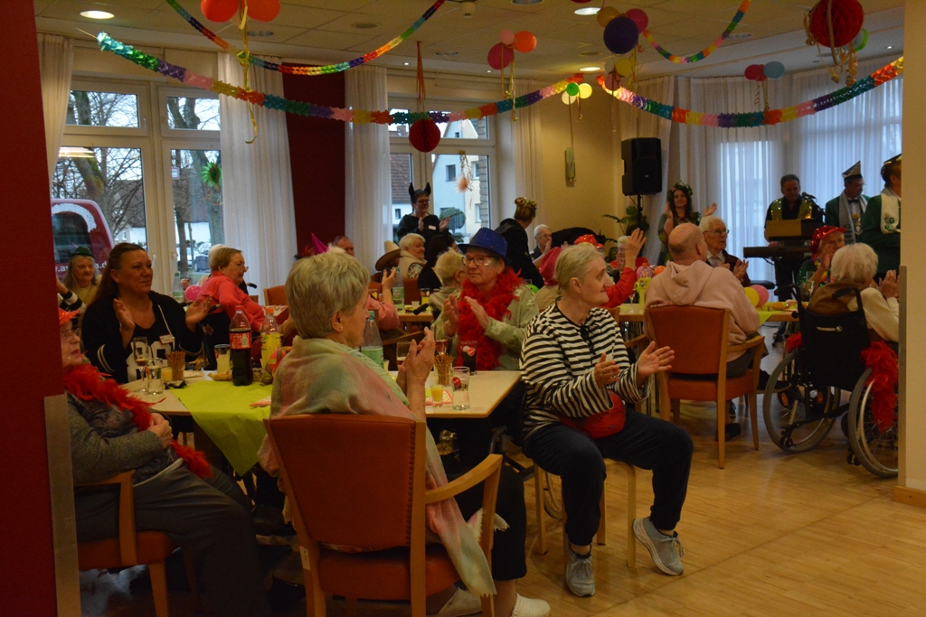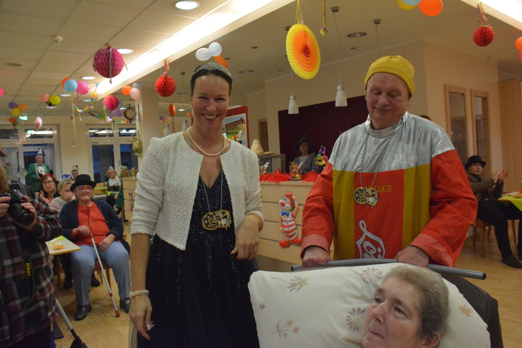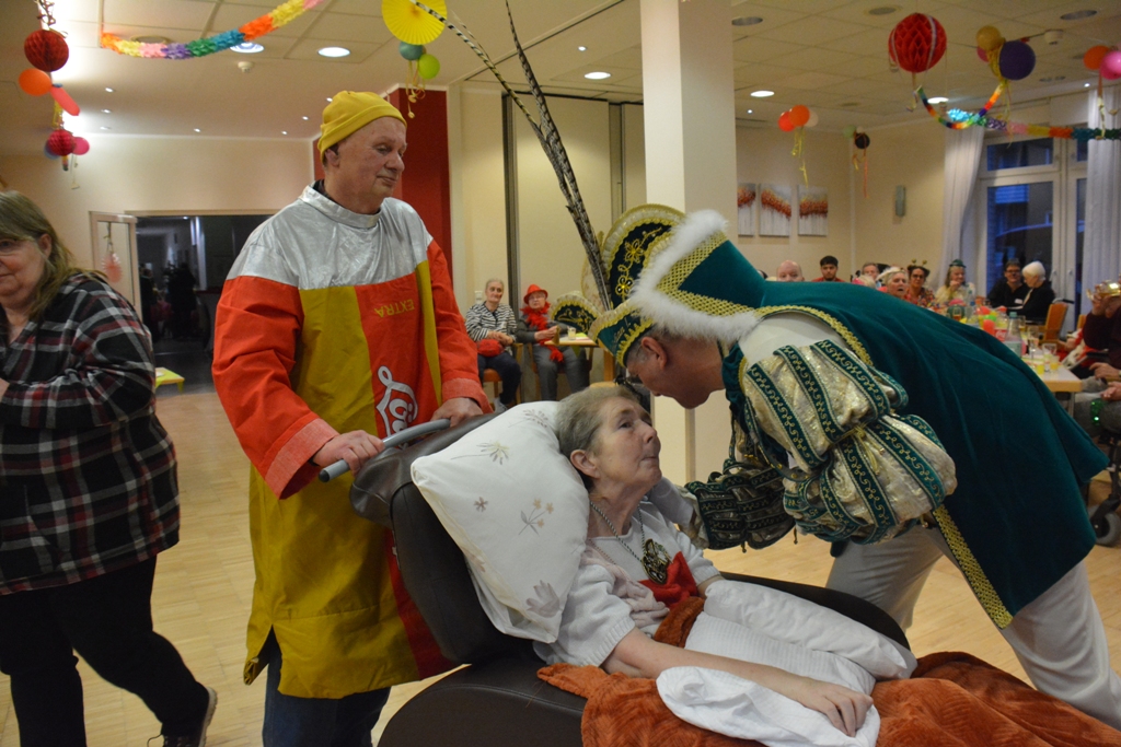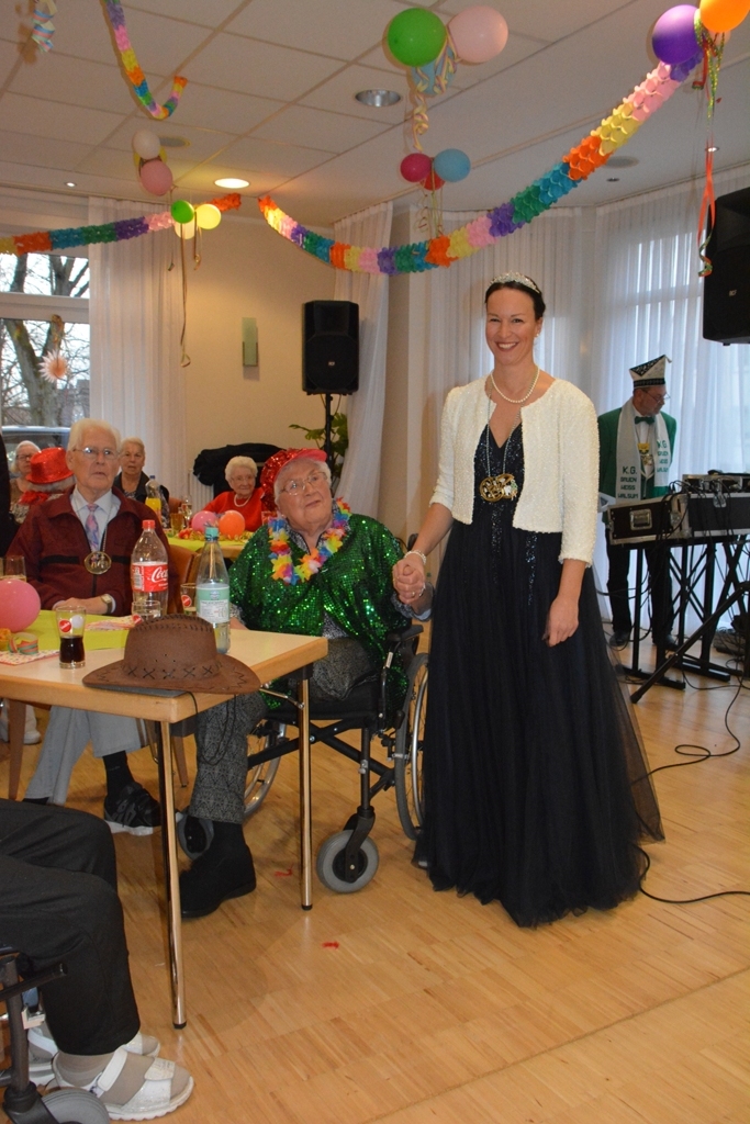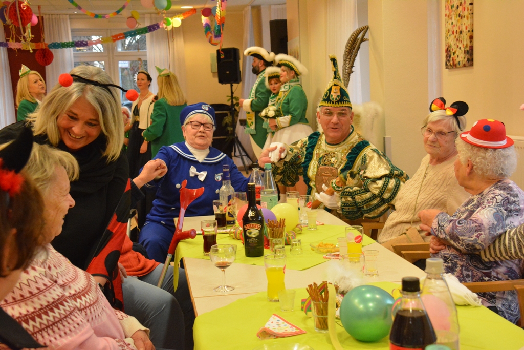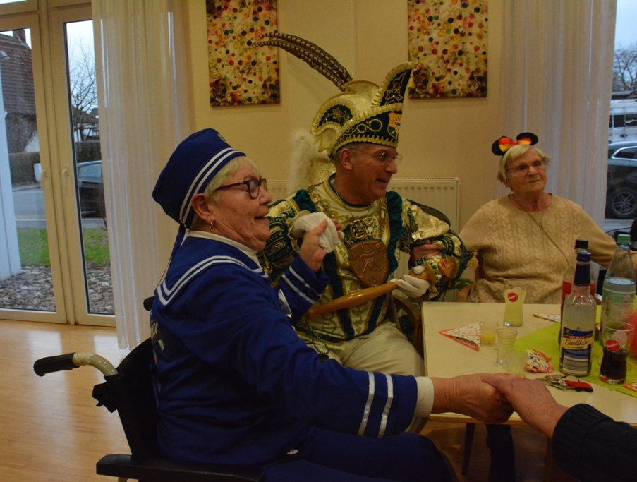 Die Bewohner hatten sich schon mit dem Entertainer Uwe Bongartz in beste Feierlaune gebracht und begrüßten unser Prinzenpaar mit Gefolge fröhlich und mit großem Hallo.