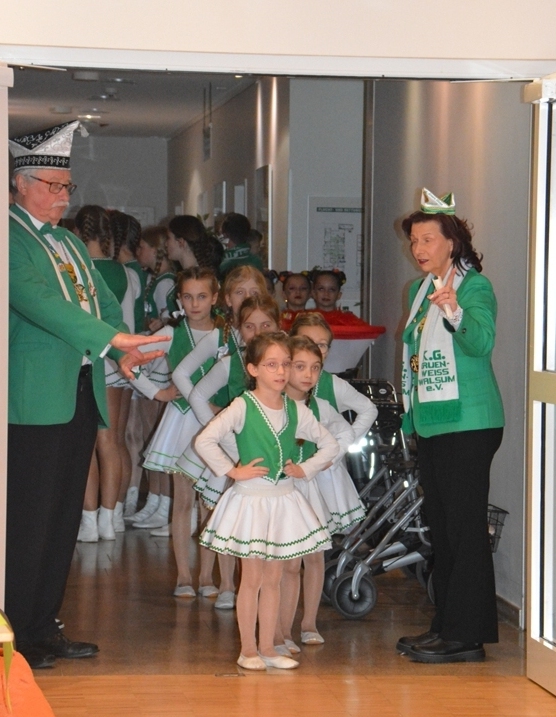 Am 24. Januar besuchten seine Tollität Christian I. und ihre Lieblichkeit Christiné I. die AWO Walsum auf der Rudolfstraße und wurden durch Adjutant, Paginnen und viele Gruen-Weisse begleitet.