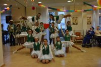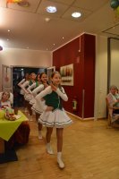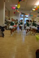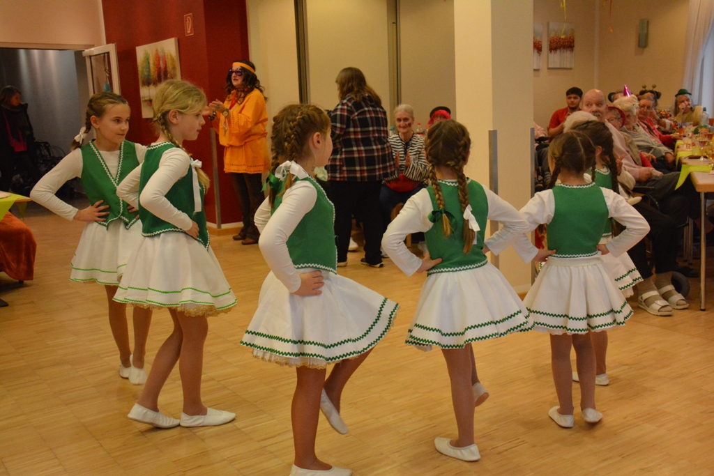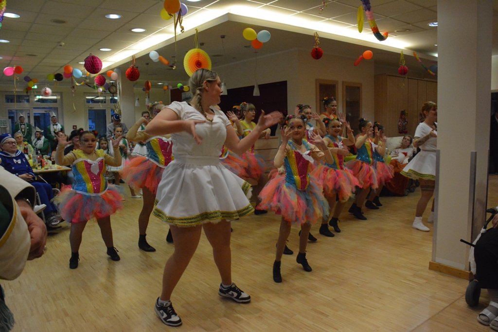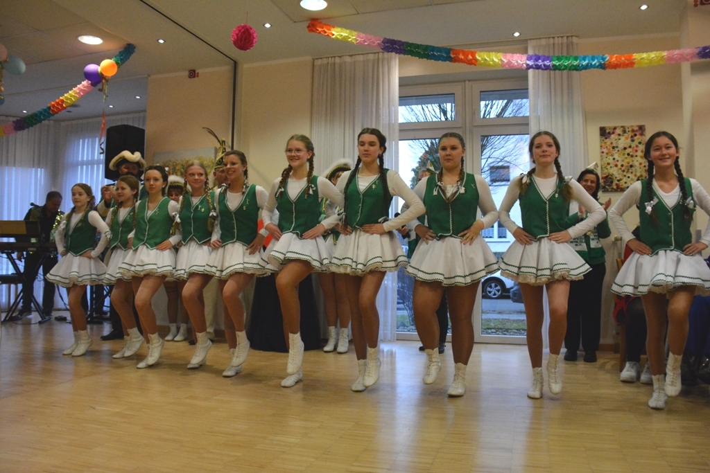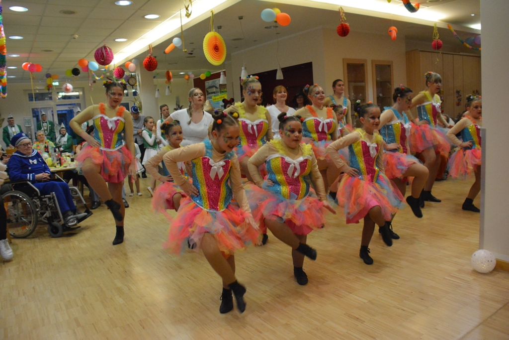 Im Casino der Einrichtung hatten sie erwartungsvoll Platz genommen und staunten nicht schlecht, als die Tänzerinnen der Walsumer Perlen und der Red Diamonds direkt vor ihren Nasen die Beine fliegen ließen und Hebefiguren wie kleine Profis darboten.