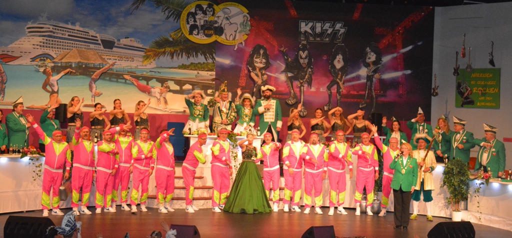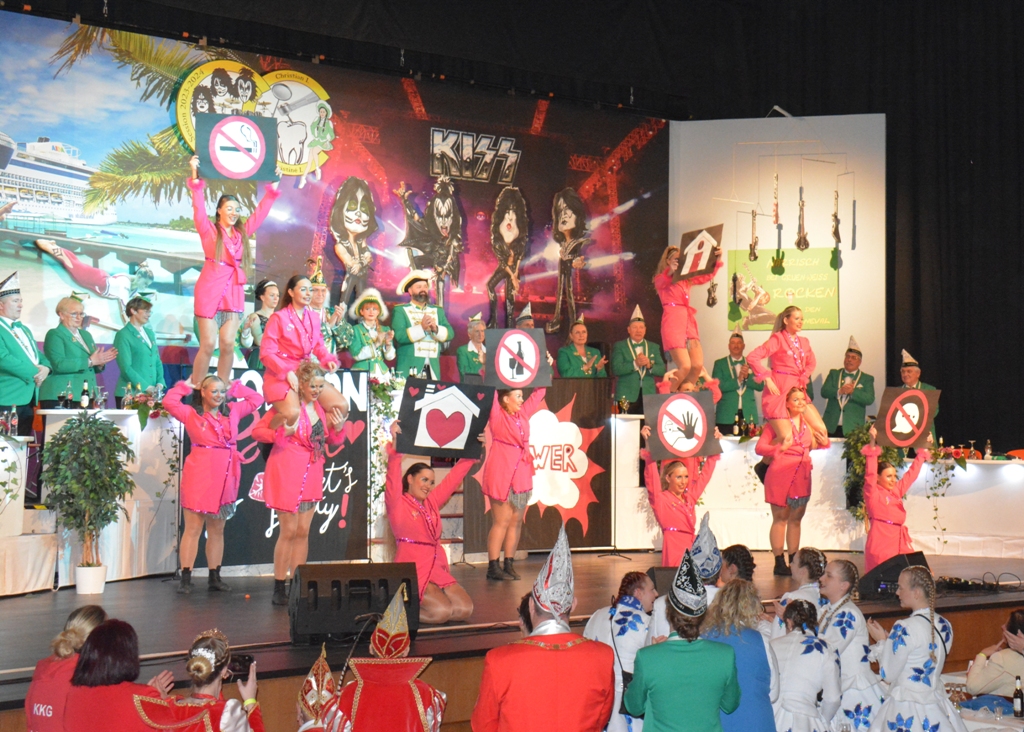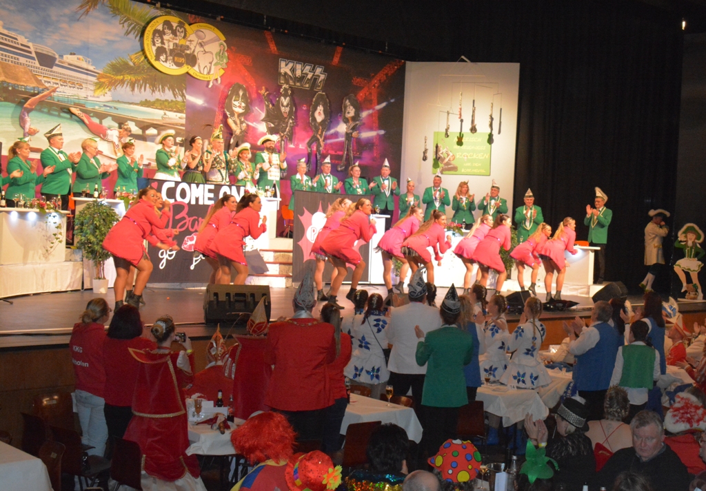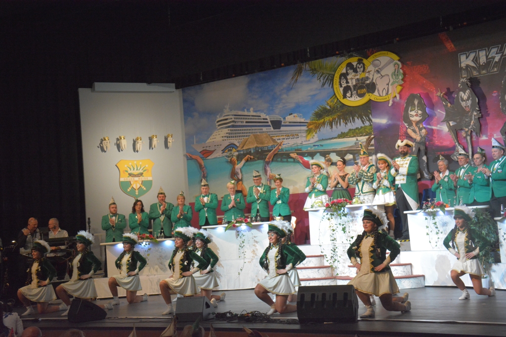Vor ausverkauften Rängen folgten in munterer Mischung Tanz, Rede, Gesang und Comedy. Unsere Gäste waren offensichtlich begeistert, sangen mit, tanzten in den Gängen und vor der Bühne. Für eine erfrischende Moderation sorgten unsere Präsidentin Dagmar Kock und Ehrenpräsident Elmar Klein und präsentierten mit Stolz, was unsere Aktiven zu bieten hatten.