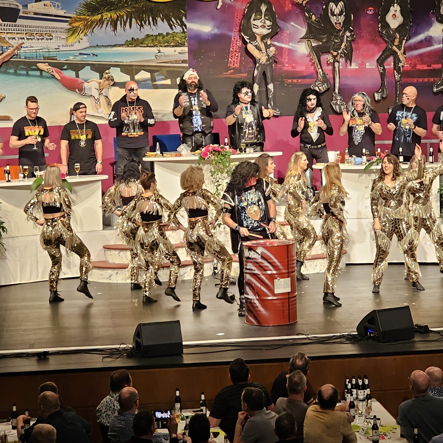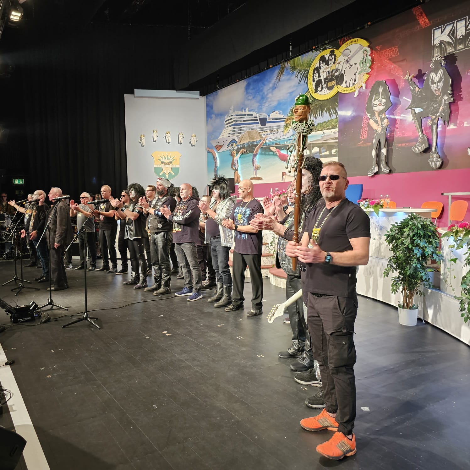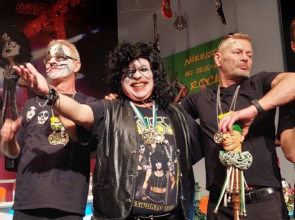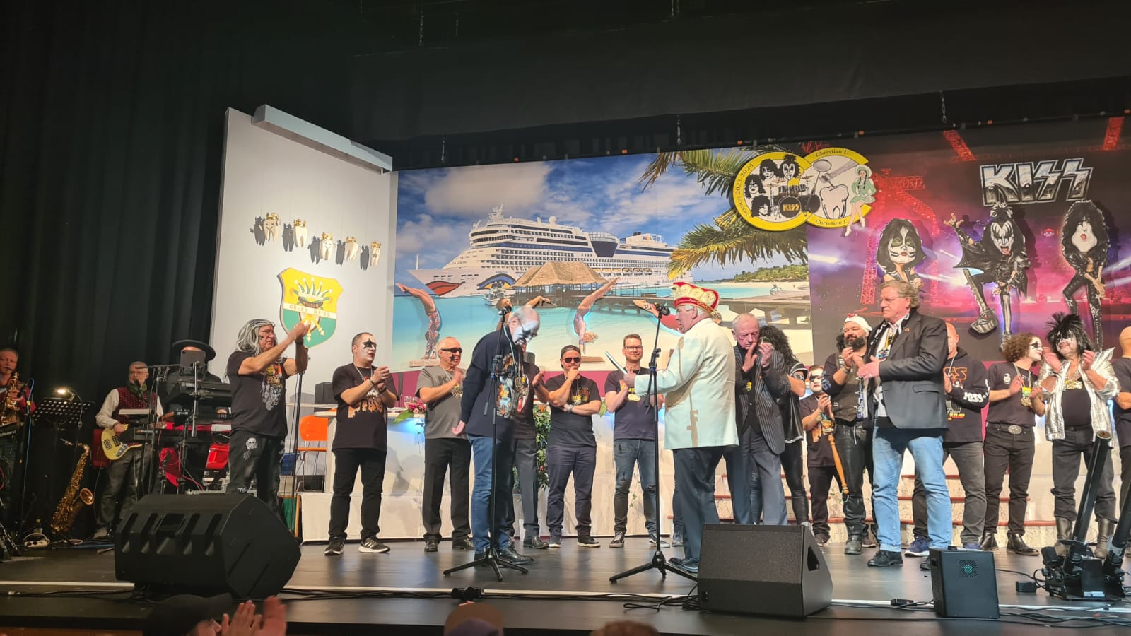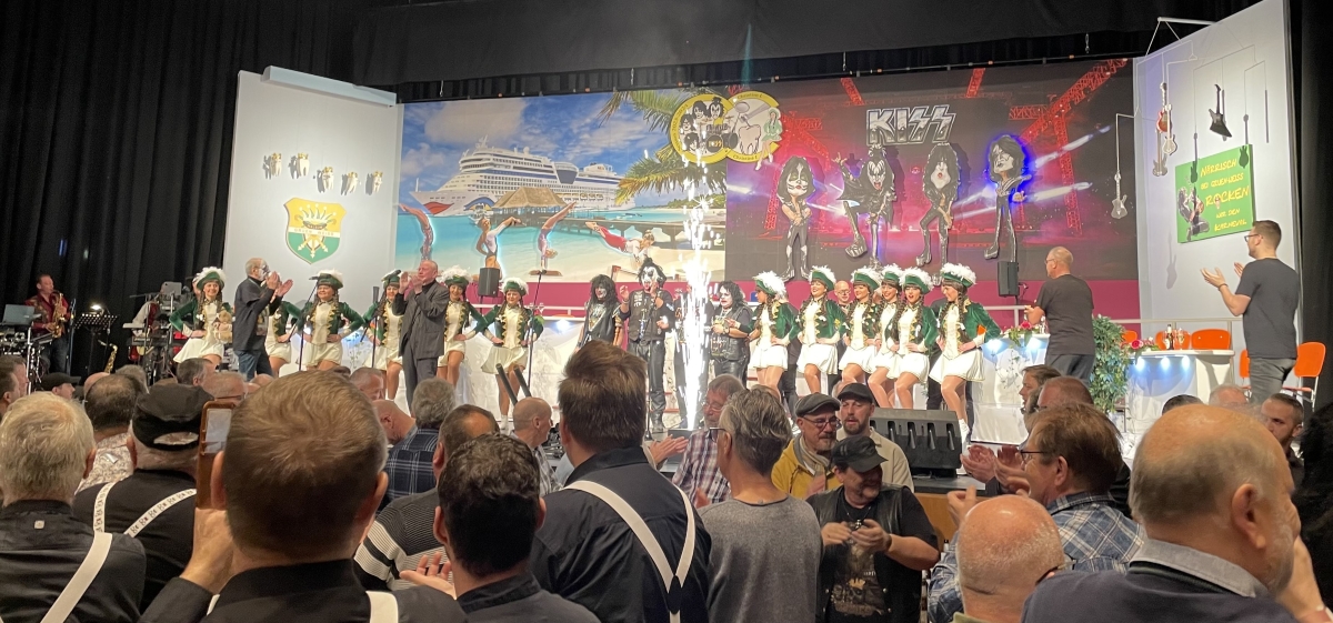 Das war der Moment, als Prinz Christian I. und sein Elferrat zu den Bässen von KISS "I was made for Lovin you" den Saal und unter Beifallsstürmen der Zuschauer die Bühne besetzten.