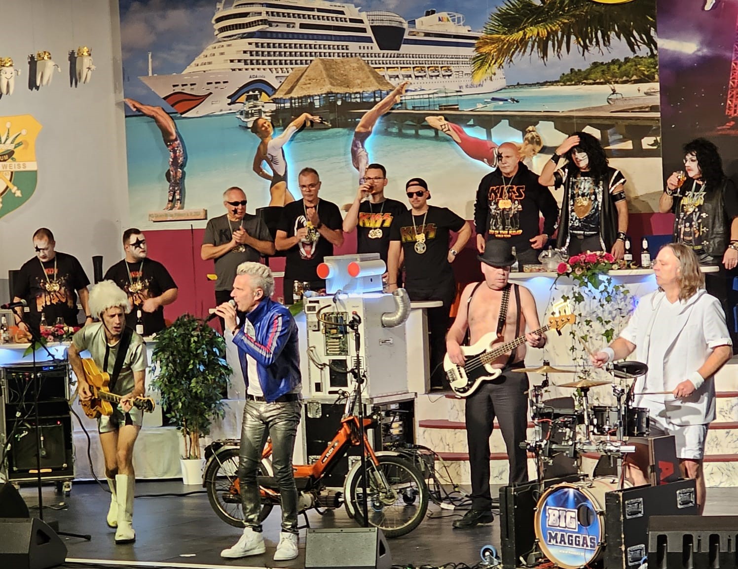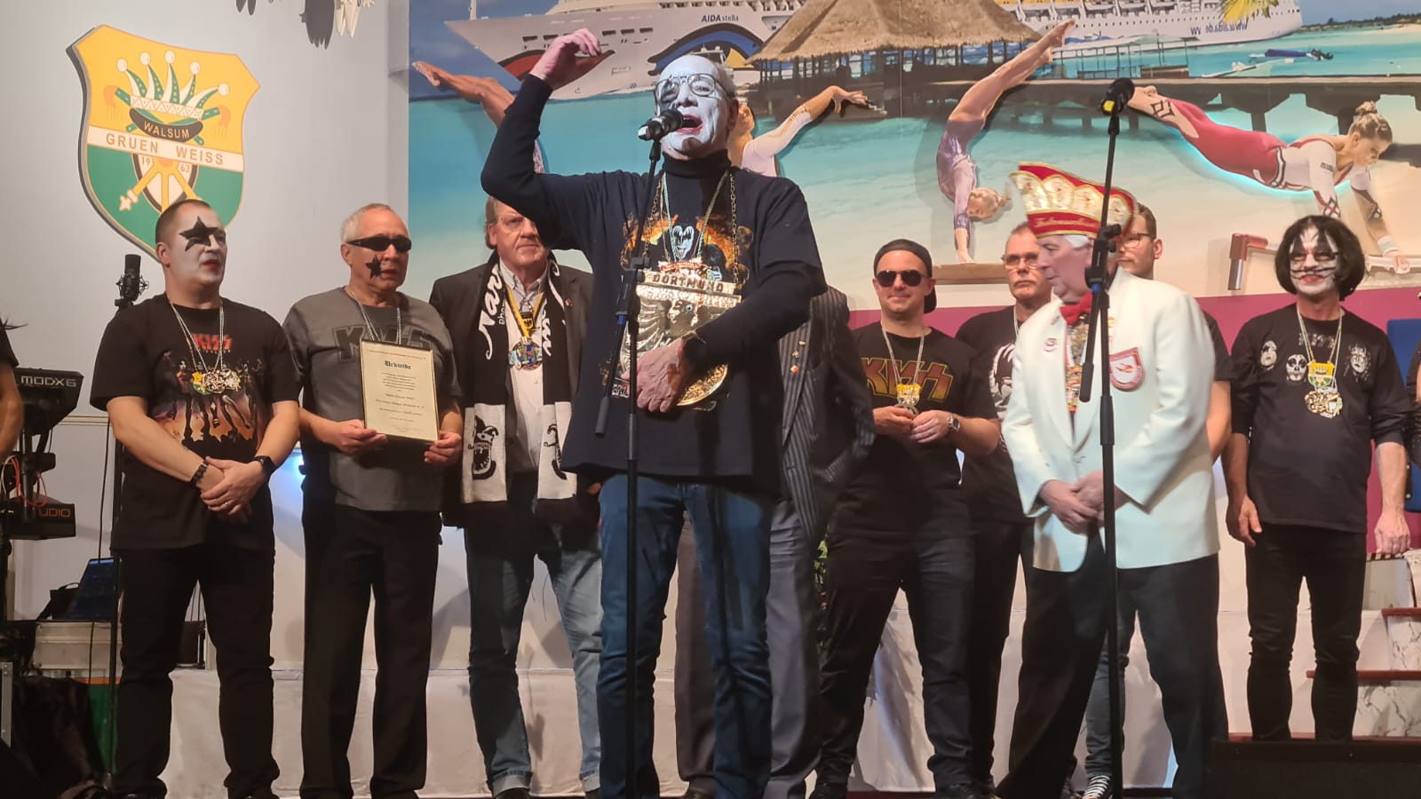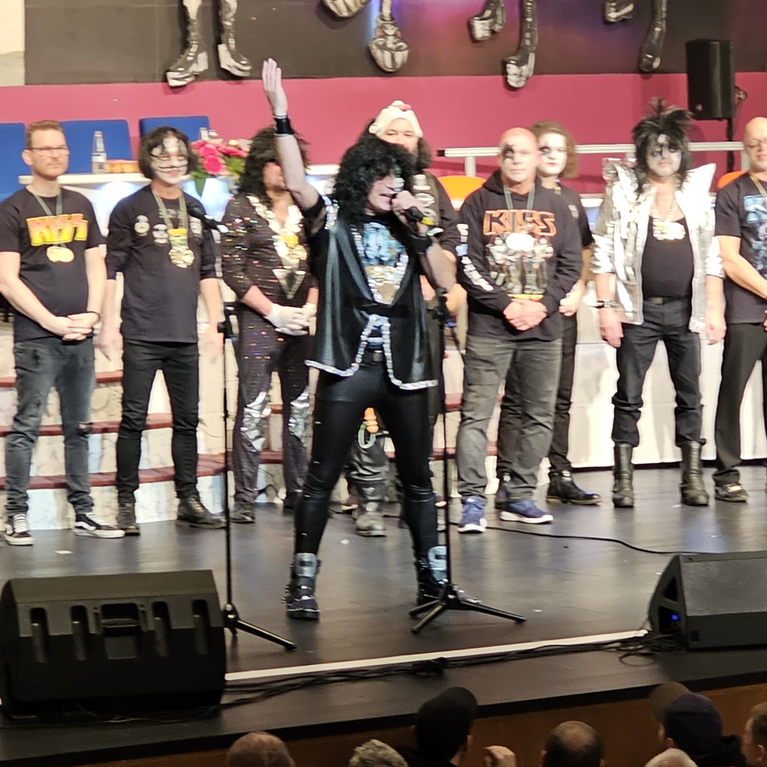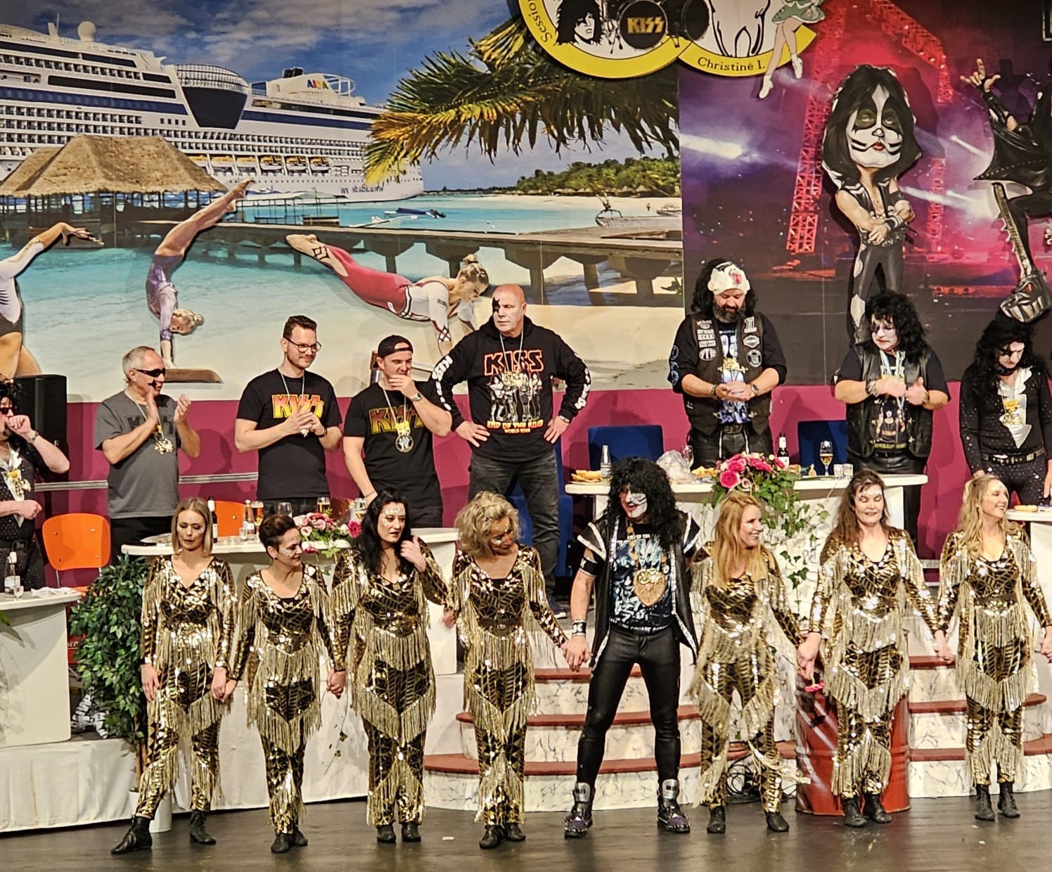 Das war der Moment, als Prinz Christian I. und sein Elferrat zu den Bässen von KISS "I was made for Lovin you" den Saal und unter Beifallsstürmen der Zuschauer die Bühne besetzten.