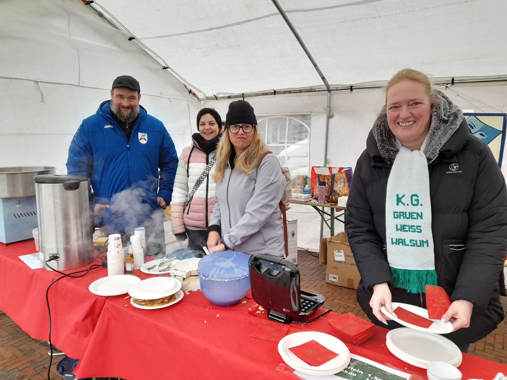 Mit Logistk und Muskelkraft beim Aufbau des wetterfesten Standes brachten wir für die kleinen Walsumer, die den Weg zu uns fanden, Leckeres und Kreatives auf die Beine.