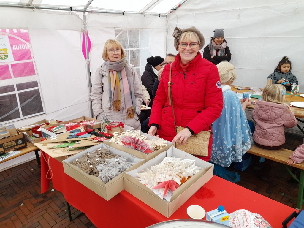 Ein großer Basteltisch mit Utensilien für weihnachtliche Präsentchen und schon fertige Kunststückchen unserer Aktiven Roswitha Nötzel brachten Augen zum Leuchten und einige Euro in die Kasse.