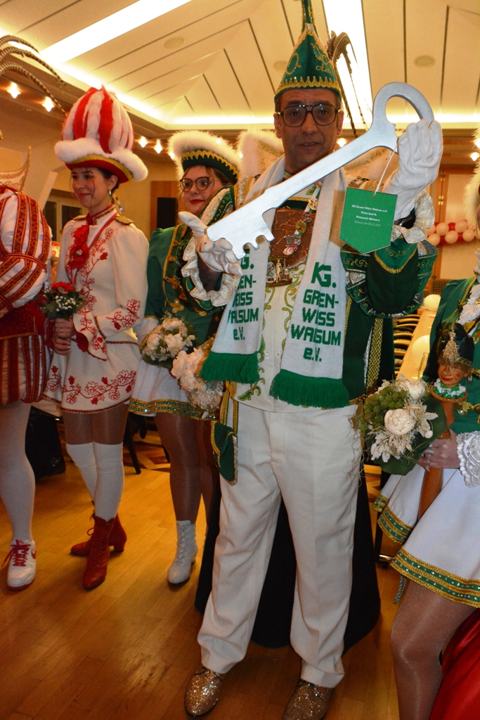 Letztlich ergab er sich dem Charme der Lieblichkeiten und dem Esprit der Tollitäten und übergab die Schlüssel zum Rathaus bereitwillig.