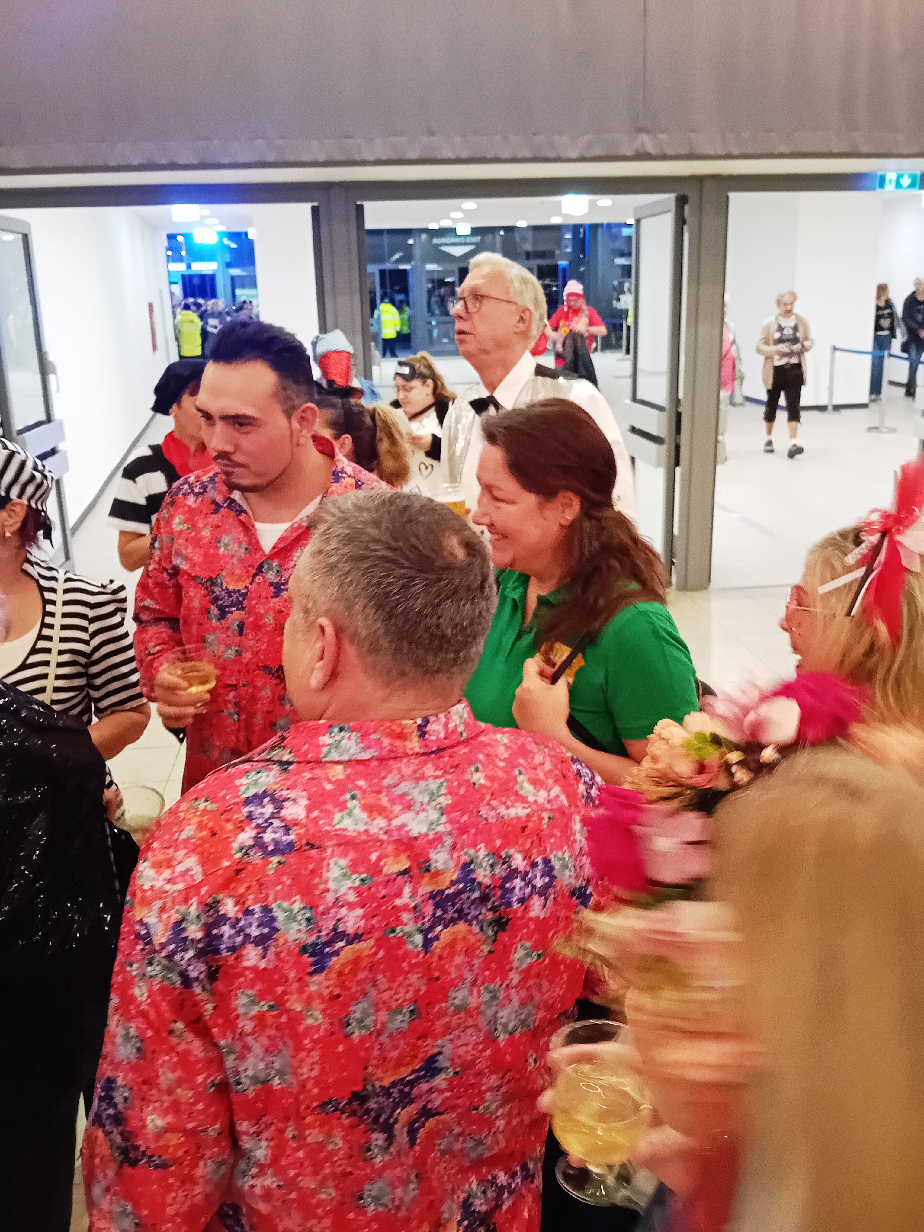 In gelassen ausgelassener Stimmung warteten wir also und vertrieben uns die Zeit mit Plaudereien über die kölschen Bands, die uns begeistern sollten und natürlich unsere bevorstehende Proklamation am 15. November. Das Programm und auch die Gerüchteküche um das neue Prinzenpaar wurde nicht ausgespart.