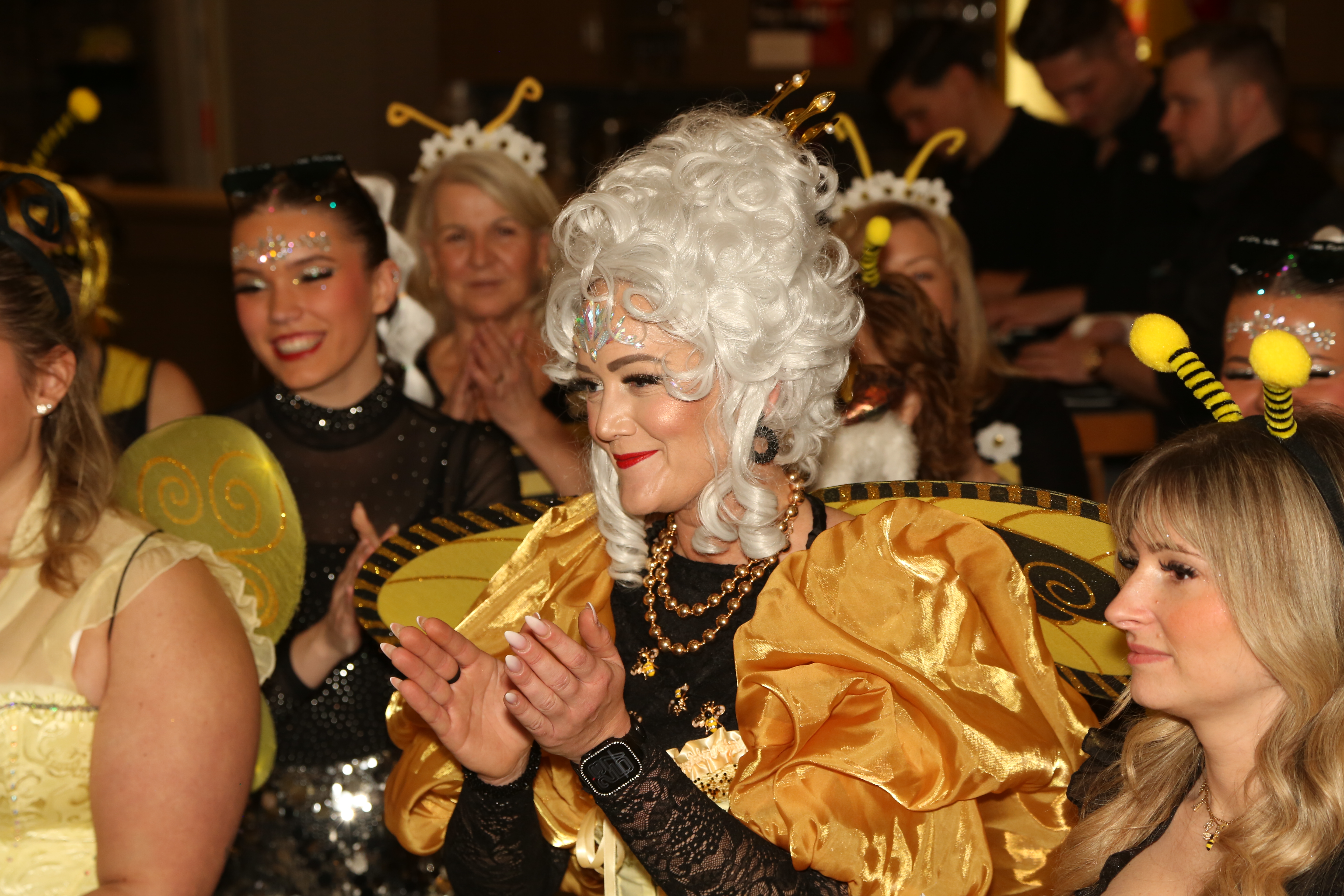 So empfing unsere Bienenkönigin Prinzessin Laura I. (bürgerlich Laura Hörnicke) ihre närrisches Volk zusammen mit ihrem Bienenschwarm, dem Damenelferrat welcher in großer Zahl die gruen-weisse Bühne schmückten.